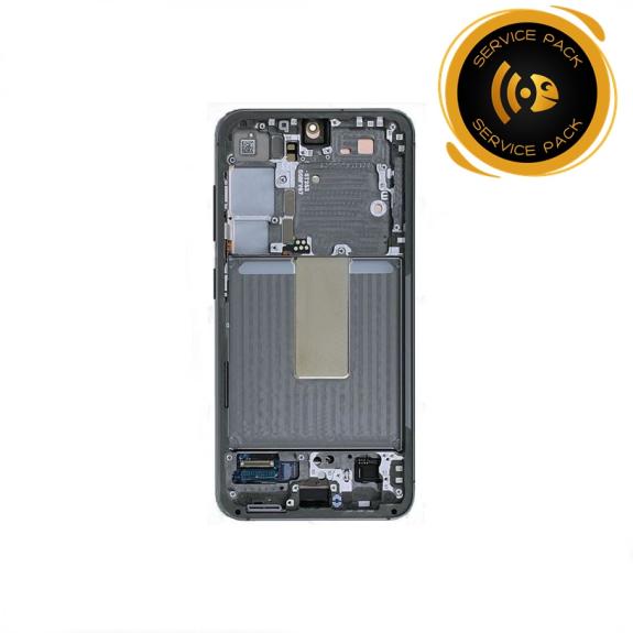 Repuesto de pantalla táctil completa para Samsung Galaxy S23 5G con marco en color verde.